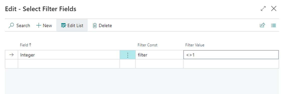 Select Filter Fields and Conditions: